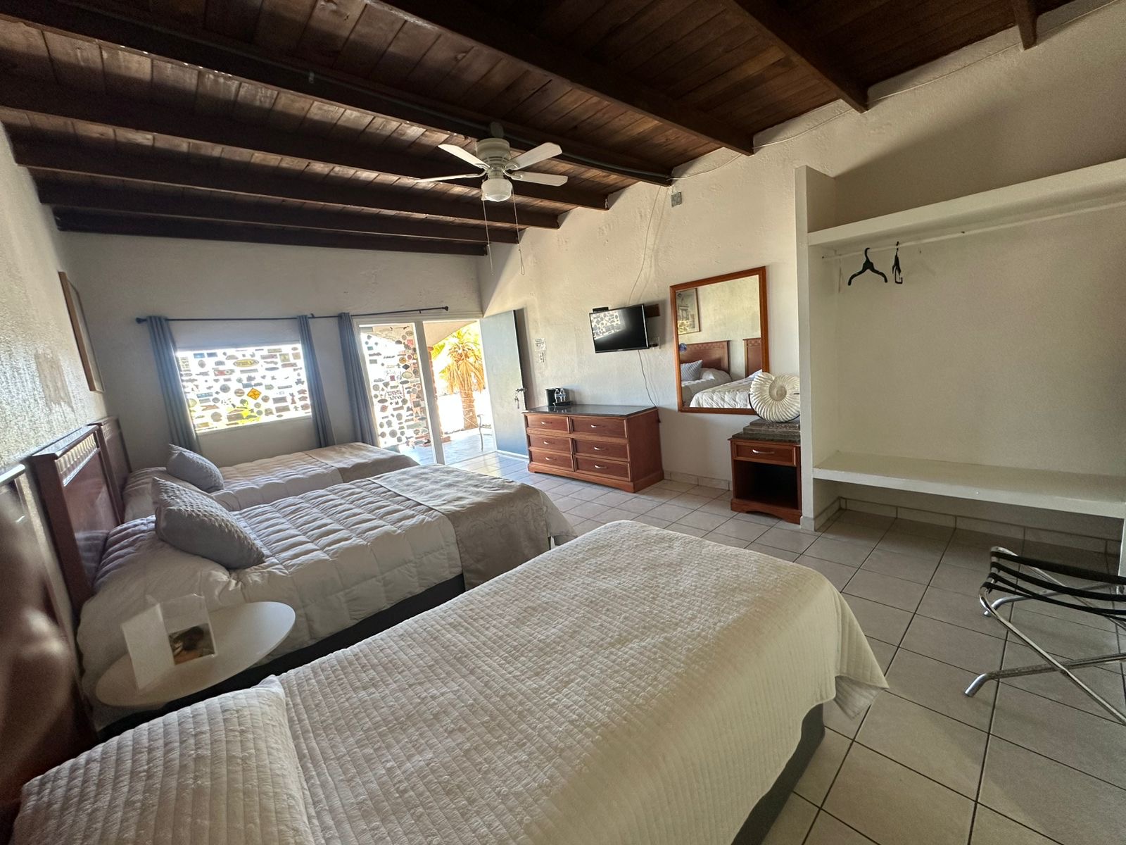 - 2 Queen beds and 1 single bed (or sofa bed)